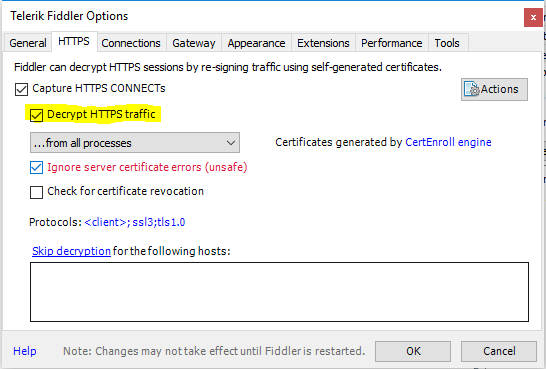 這就是為什麼我在 Fiddler 上的第一個配置是解密 HTTPS 流量,